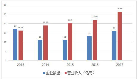 | 年份 | 企業(yè)數(shù)量(家) | 營業(yè)收入(億元) | 增長率 | 吸納從業(yè)人數(shù)(人) |
